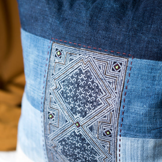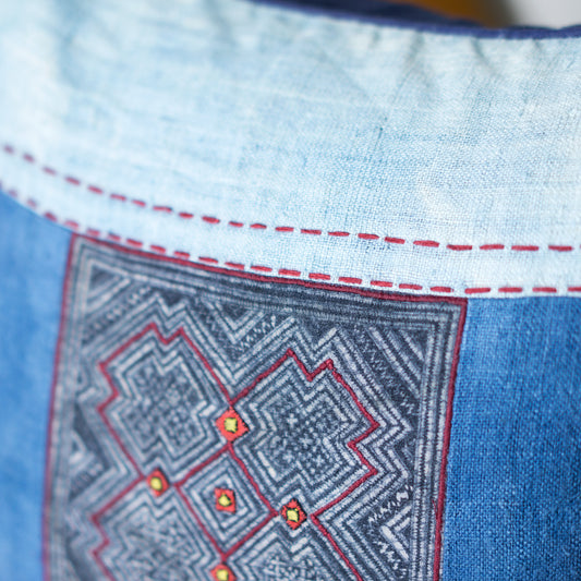 Decorative Hemp Pillowcase | Indigo Batik Pattern